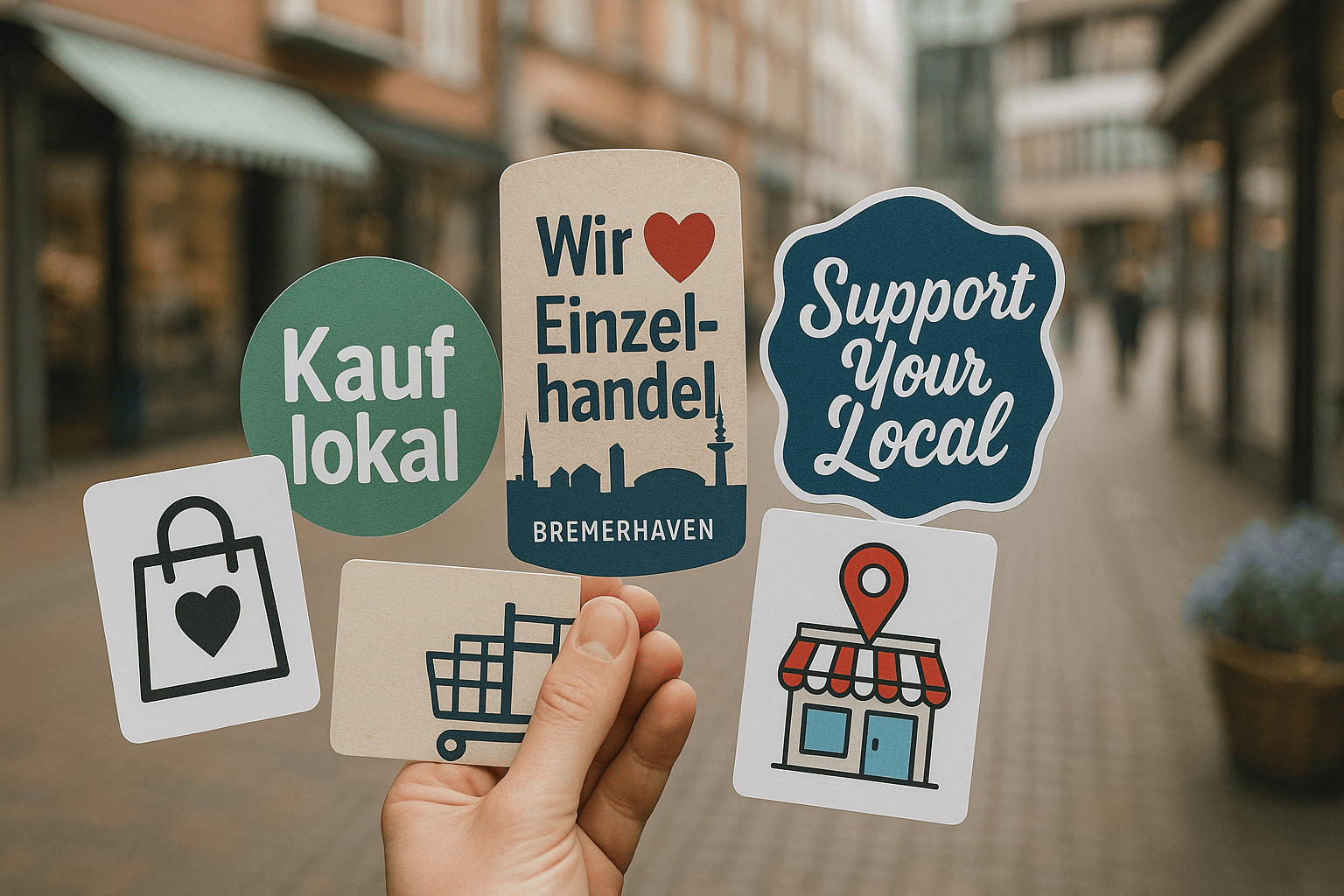5 kreative Ideen für Schilder und Aufkleber zur Unterstützung des Bremerhavener Einzelhandels